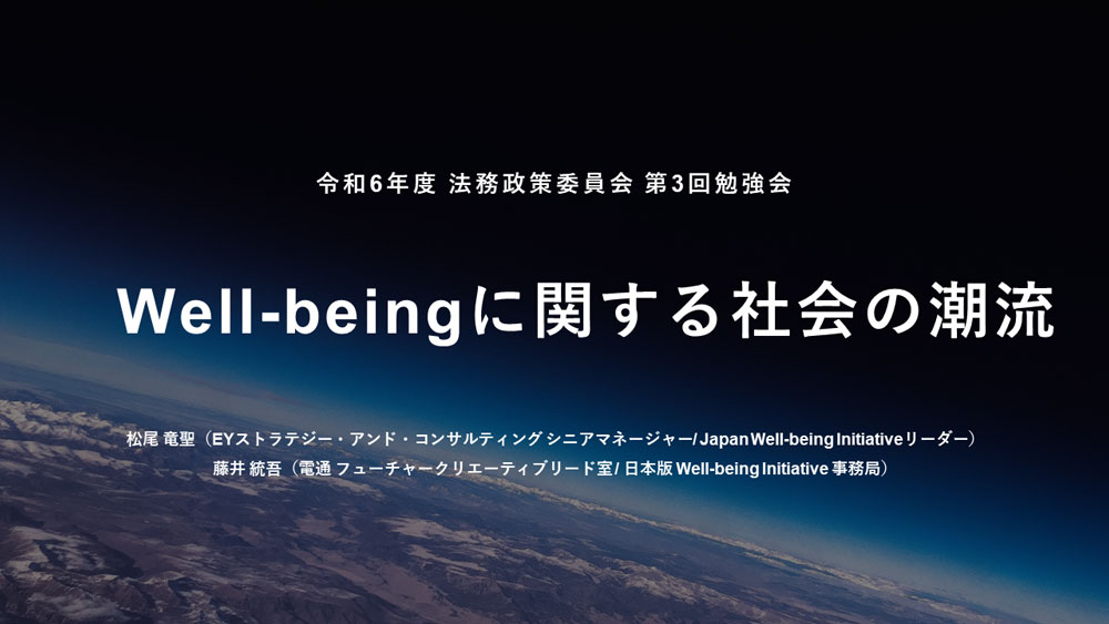 このように、Beyond GDP、ポストSDGsのアジェンダとして注目され、世界規模でWell-beingに対する枠組みが形成されつつあるWell-beingに対して、流行り言葉として捉えるのではなく、「だれのためのWell-beingか?」の解像度を高めながら取り組む必要があります。