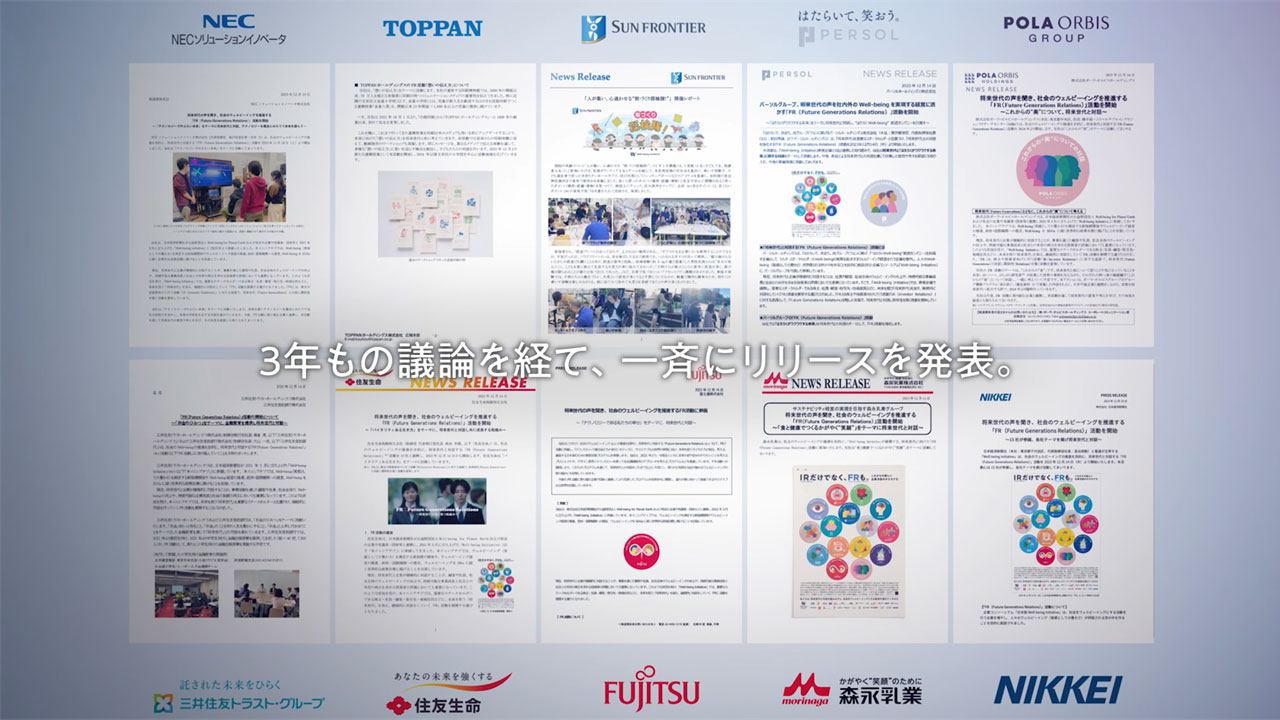 まずは、このイニシアチブに参画している企業から「FR」という考え方を打ち出していきますが、今後多くの企業でもFR活動がはじまっていき、企業と将来世代の対話が根付いていくことで、社会をWell-beingにすることにつなげていければと考えているシンボリックアクションです。