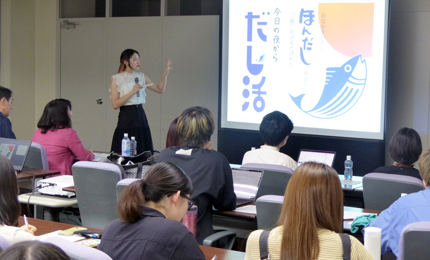 大学生広告制作講座開催 令和6年度(第34回)の大学生広告制作講座は、味の素「ほんだし®」を課題商品として開催し、約30名の学生が参加しました。