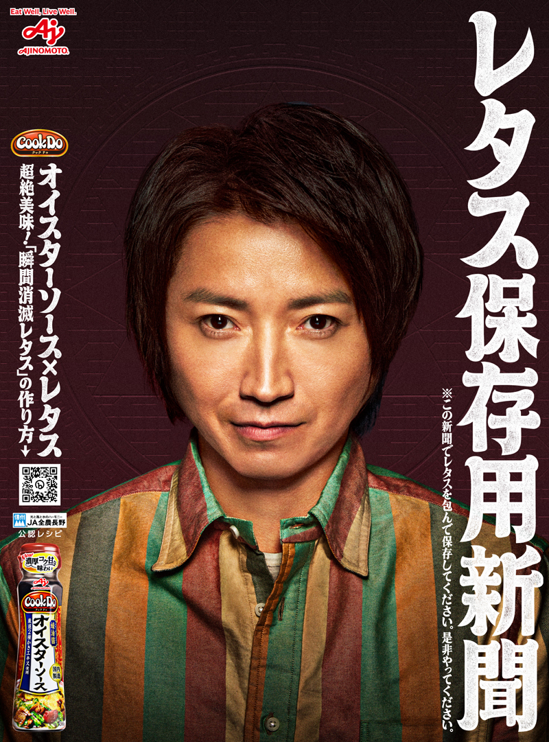 たとえば、世の中のフードロスの問題でレタスを買ってもなかなか食べきれない、という声がある。ではレタスを包んで保存できる紙になる15段の新聞広告を作ろうということで、俳優の藤原竜也さんの顔を全面に乗せた広告を作りました。