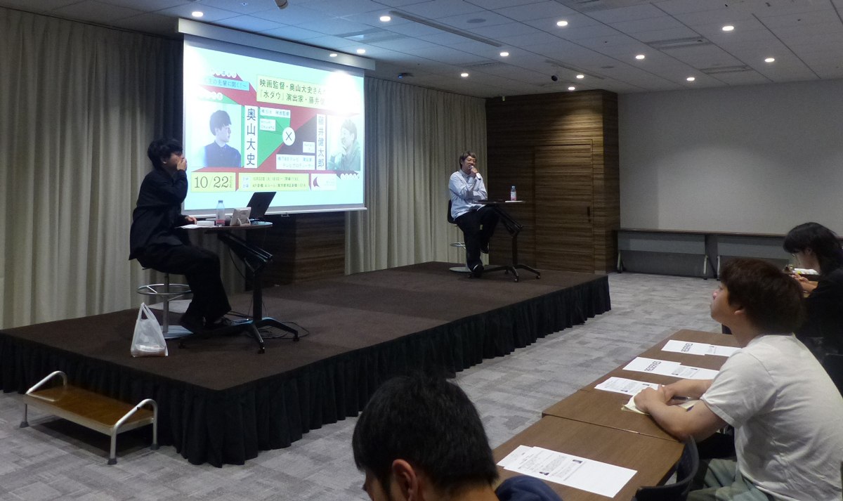 同講演会を10月22日、「特別講演会 ~人生の先輩に聞く!~ 映画監督・奥山大史さんが聞いてみたい、『水ダウ』演出家・藤井健太郎さんの話!」と題して、奥山大史氏(㈱SIX 映画監督)・藤井健太郎氏(㈱TBSテレビ 演出家、テレビプロデューサー)を招いて開催しました。