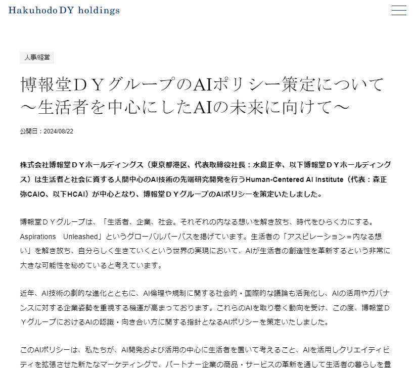 博報堂DYグループのAIポリシー策定について ~生活者を中心にしたAIの未来に向けて~