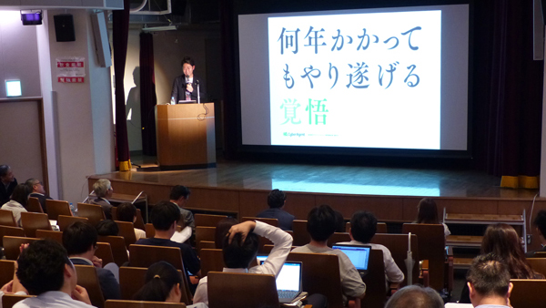 第1講は「AbemaTV 日本を代表するメディアへの挑戦~アベマ流 オリジナルコンテンツの作り方~」と題して、谷口達彦氏(㈱AbemaTV 制作局長)が登壇。